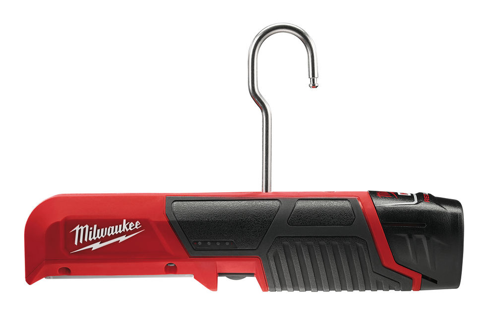 Skládací otočné světlo Milwaukee s magnety a integrovanou karabinou.