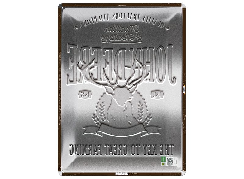Dekorativní plechová cedule John Deere vyrobená z extra silného ocelového plechu, který je klenutý a vyražený ve více vrstvách. Cedule má zvlněné okraje, zaoblené rohy, předvrtané ...