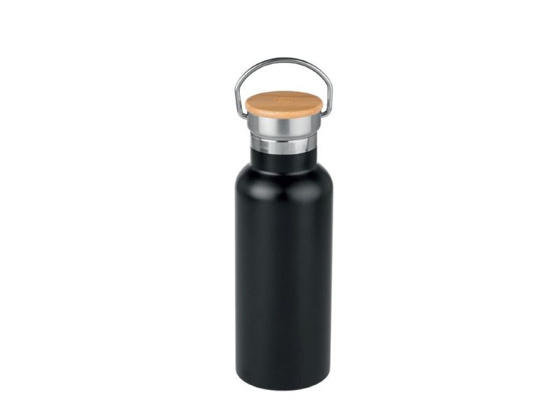 Nerezová izolovaná láhev s bambusovým uzávěrem, s držadlem a laserově vyraženým logem John Deere. Láhev je nepropustná a vhodná do myčky nádobí.