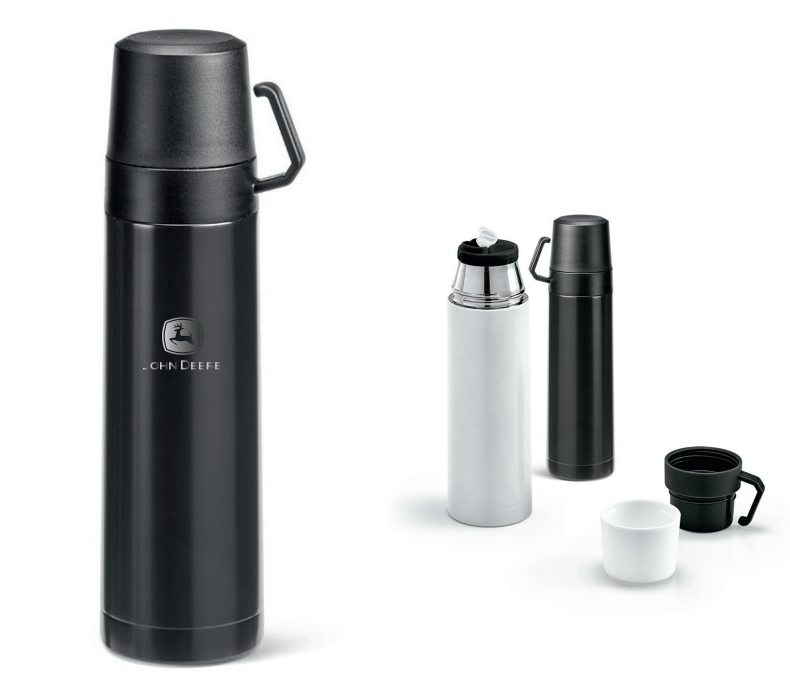 Nerezová termoska (490 ml) se 2 šálky integrovanými ve víčku a logem John Deere.