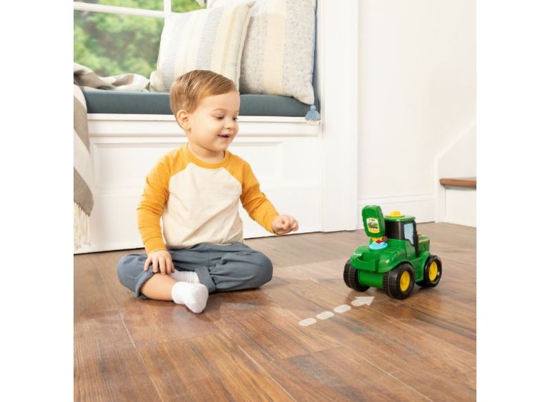 Dejte svému dítěti klíč k zábavným hrám s tímto traktorem John Deere Key-n-Go Johnny. Tato interaktivní hračka podněcuje jejich zvědavost díky 15 interaktivním funkcím, které podporují zkoumání příčiny a následku a kreativní hru. Vložte klíč do oranžového motoru a uslyšíte pět různých zvuků traktoru a světel. Otočte klíčem ve žlutém poli a Johnnyho oči se roztočí, aby ukázaly tři různé výrazy, z nichž každý je doprovázen různými zvuky a světlem. Použijte klíč v modrém poli a Johnny traktor řídí čtyřmi různými směry. Každé otočení klíčku je doprovázeno zábavnými zvuky spolu s rozsvícením motoru a světlometů. Klíčenka má v zadní části perfektní úložný prostor. Johnny je dodáván se 3 bateriemi AA, takže zábava může začít hned!