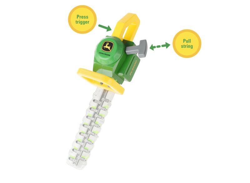 Dejte mladým fanouškům John Deere způsob, jak pomoci s prací na zahradě! Tento jedinečný a realistický plotostřih se má pestrobarevnou pevnou plastovou konstrukci, která je odolná i pro batolata. Děti zatáhnou za šňůru a pak zahájí akci. Stiskněte spoušť, aby se „čepele“ v nůžkách na živý plot rozhýbaly. Tato hračka na dvorek je zábava pro děti – nejsou potřeba žádné baterie. Dopřejte batolatům ve věku od 18 měsíců hračku pro venkovní zábavu!
