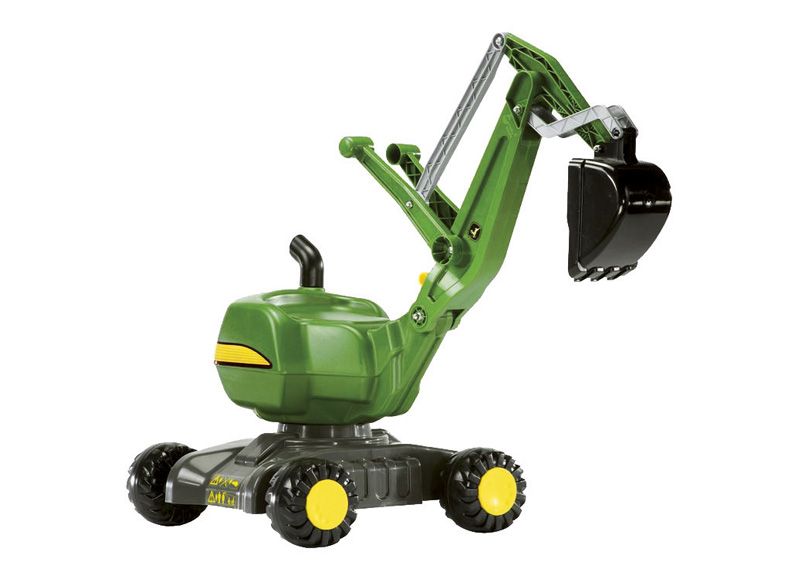 Robustní dětský bagr, který je otočný o 360°, je vyrobený z plastu. V typických barvách John Deere a s automaticky uzamykacím ramenem.