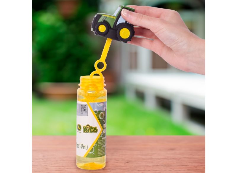 Zažijte spoustu zábavy s bublifukem John Deere Bubble Bottles! Tento větší bublifuk o objemu 147 ml je plný netoxického roztoku na bubliny a na víčku ho zdobí ikonický traktor John Deere. Díky speciálně tvarované hůlce si děti mohou snadno vytvářet bubliny a zapojit při hře svou fantazii.