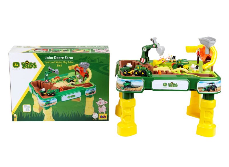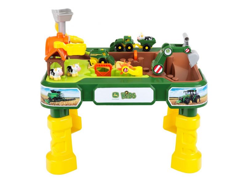Farma John Deere - Hrací stůl s pískem a vodou 2v1 děti zabaví na dlouhé hodiny. Nabízí spoustu aktivit, vaši nejmenší si mohou hrát s traktorem John Deere, kombajnem nebo rypadlem. Na hracím stole najdete i farmu se stájí a třemi kravičkami, mycí stanici pro krávy a vozidla John Deere. Hrací stůl má 2 velké odnímatelné misky na písek a vodu. Děti si užijí spoustu zábavy s padacím mostem, vodními přepážkami, vodním kolem a malou miskou na rostliny. Zábava pro nejmenší i větší děti zaručena!