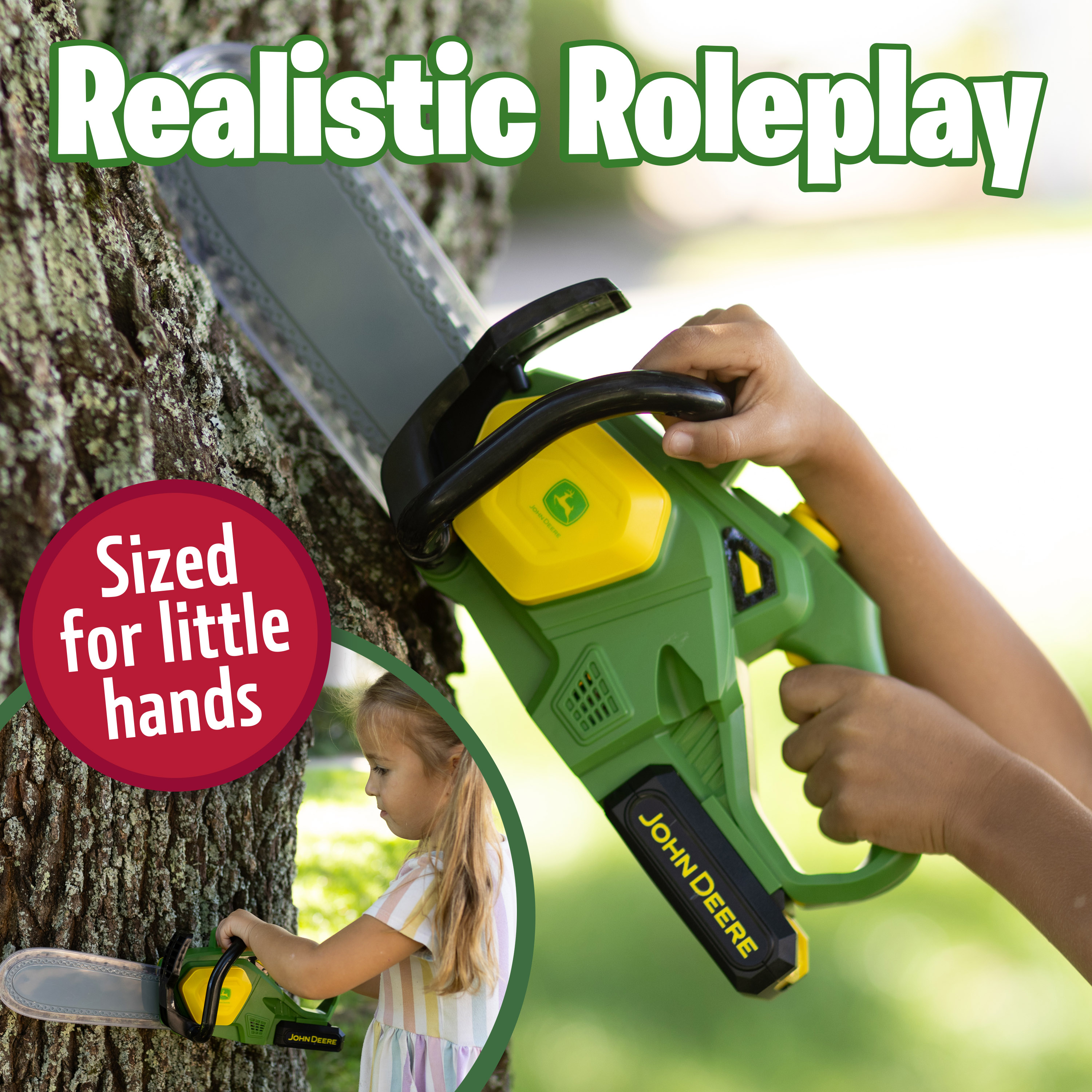 Odnímatelný bateriový modul ještě více podněcuje představivost a podporuje rozvoj jemné motoriky i tvořivé hraní. John Deere Power Tools Motorová pila je perfektní doplněk pro každého malého dobrodruha a fanouška značky John Deere!