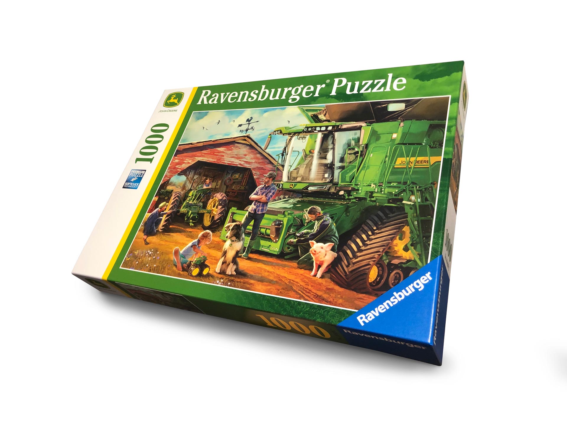 PUZZLE JOHN DEERE SKLÍZECÍ MLÁTIČKA NA STATKU, 1000 DÍLKŮ