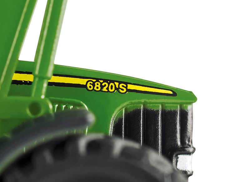 Replika modelu traktoru 6820S s pohyblivým čelním nakladačem. S filigránovým bočním potiskem na kapotě. Značka: WIKING. Měřítko: 1:160. Věk: 14+.