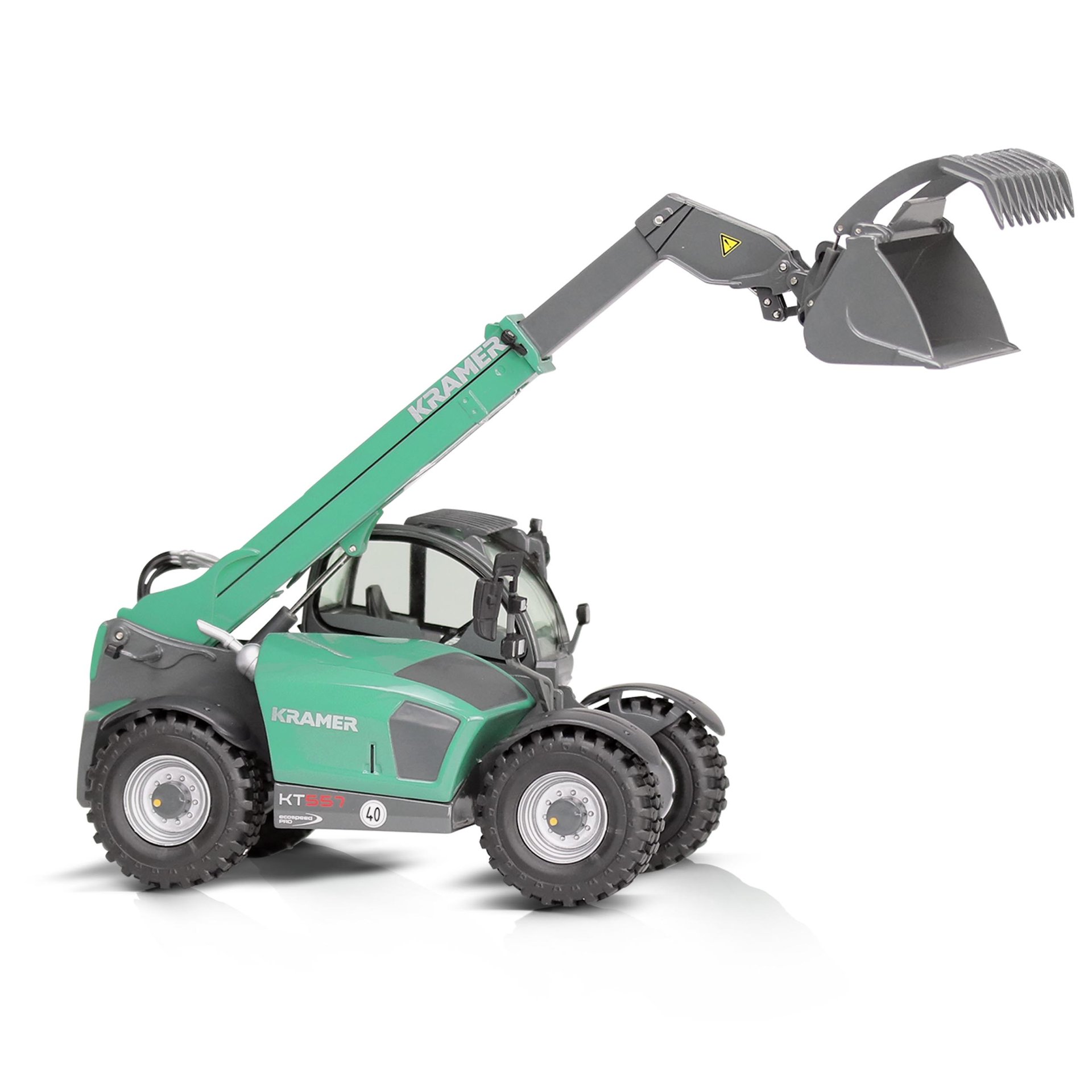 Nezbytná výbava každého sběrače je model teleskopického manipulátoru Kramer KT557 s drapákovou lžící od společnosti NZG.