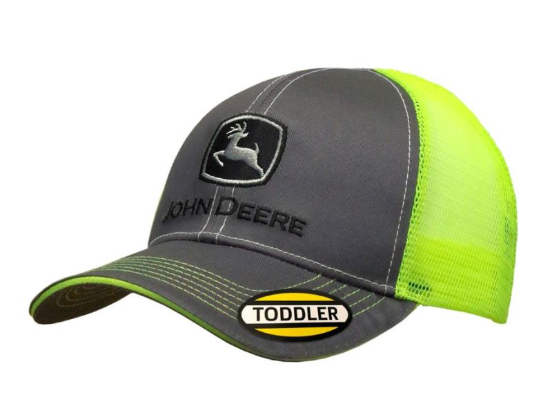 DĚTSKÁ KŠILTOVKA JOHN DEERE ŠEDÁ S NEON. ŽLUTOU SÍŤKOU