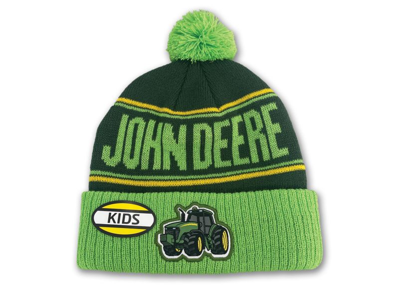 John Deere dětská pletená čepice s bambulí a nášivkou traktoru na přední straně. Materiál: 100 % akryl