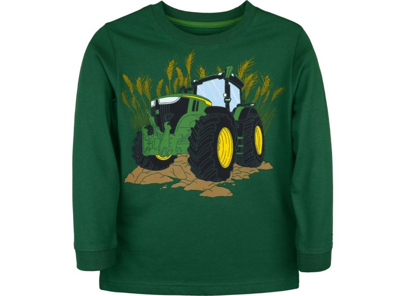 Dětské modré měkká tričko s dlouhými rukávy s historickým traktorem John Deere, který brázdí bláto. Krásný doplněk do každého dětského šatníku. Materiál: 40% polyester, 60%...