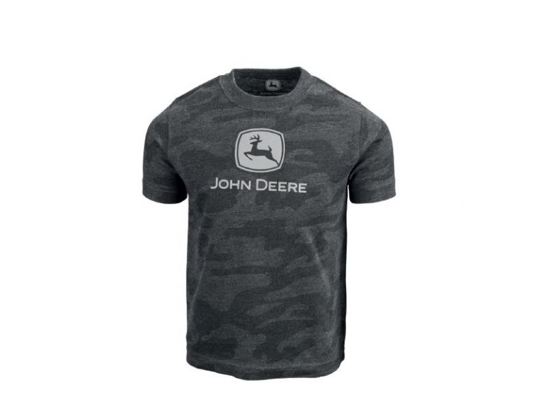 Mládežnické camo tričko John Deere se sítotiskem loga značky na přední straně. Materiál: 60% bavlna, 40% polyester