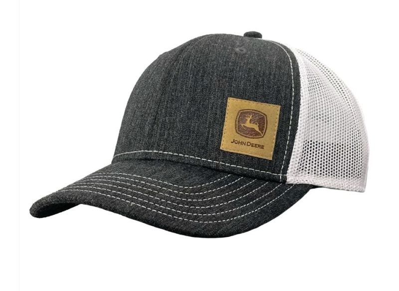 Síťovaná čepice John Deere s nášivkou z umělé kůže na levém předním panelu s logem John Deere.