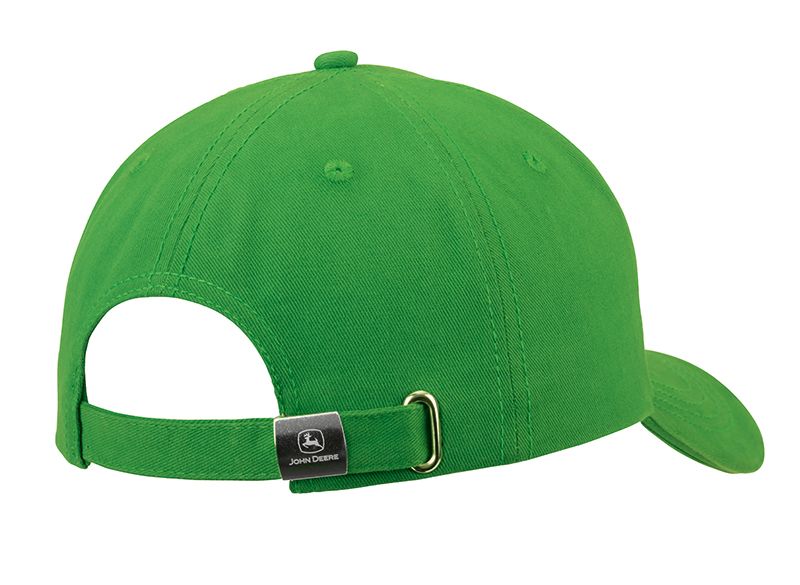 Zelená keprová čepice John Deere s vyšívaným logem a nastavitelným zadním zapínáním na suchý zip. Materiál: 100% bavlna