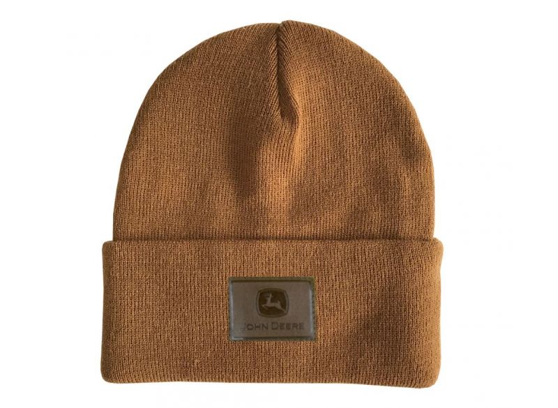 John Deere čepice/kulich s manžetou a nášivkou z umělé kůže. Materiál: 100% akrylové vlákno