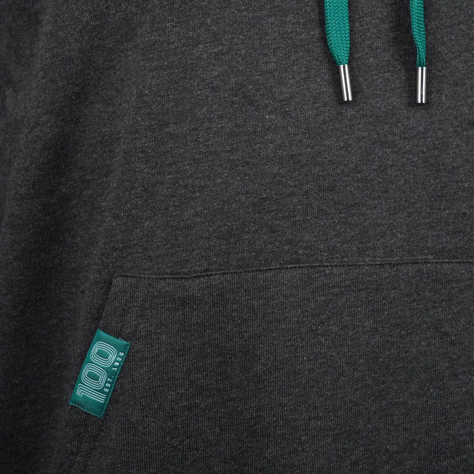 John Deere uhlově šedá fleecová mikina s kapucí a sítotiskem loga na přední straně. Materiál: 60% bavlna, 40% polyester