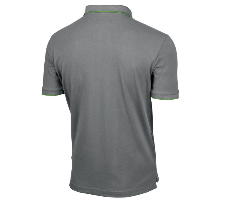Kvalitní polokošile z piqué materiálu v antracitové barvě. Logo výšivka na levé straně hrudi. Zelený melír na rukávu, límečku a knoflíkové lémě. Materiál: 100% bavlna
