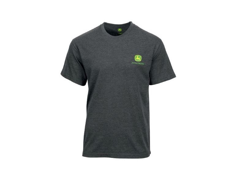 Uhlově šedé tričko John Deere s logem značky vytištěném na levé náprsní kapse. Materiál: 60% bavlna, 40% polyester