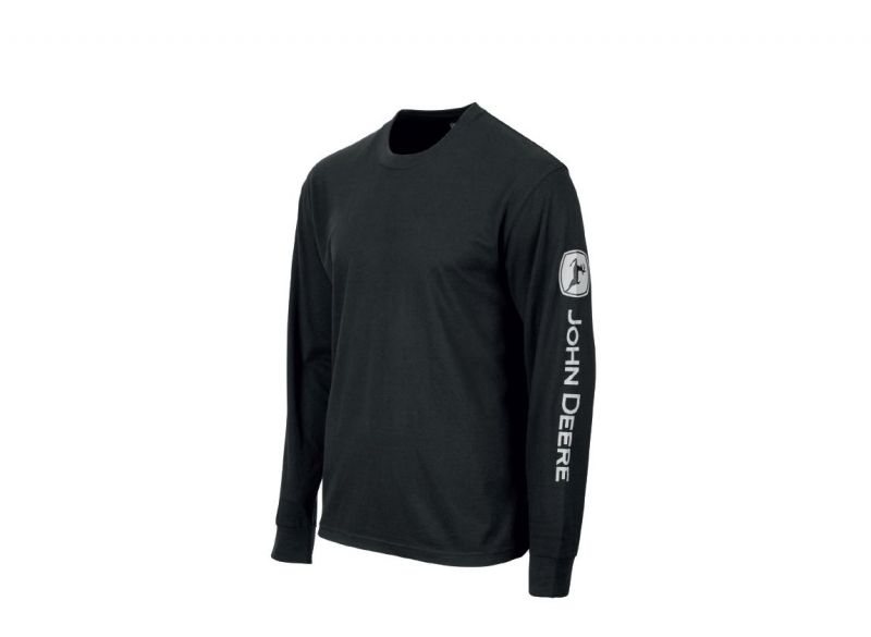 Černé tričko John Deere se sítotiskovým logem na levé straně hrudi a časovou osou loga uprostřed zad. Materiál: 100% bavlna