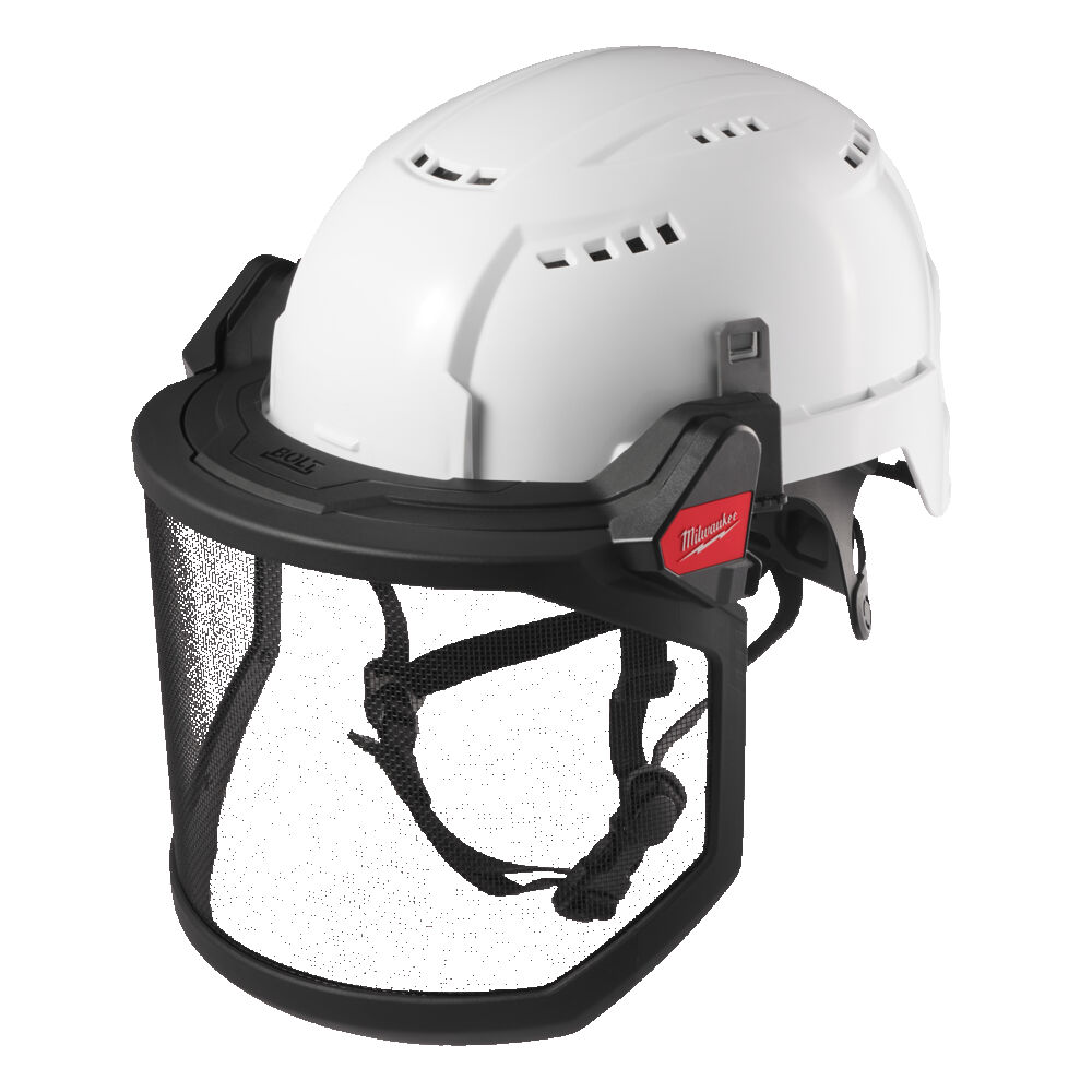 Odvětrávaná přilba Milwaukee. Přizpůsobitelný systém BOLT™ umožňuje ke přilbě snadno připevnit širokou škálu příslušenství, jako například obličejový štít či svítilnu.
