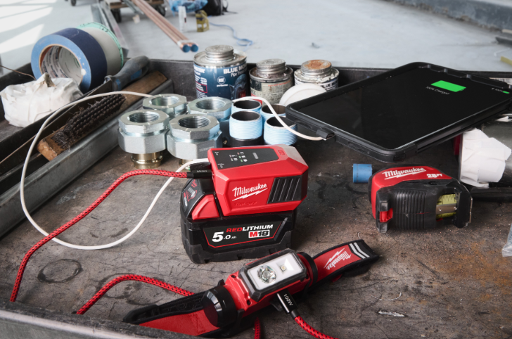 Nabíjí všechny akumulátory řady M18™ a zároveň slouží jako výkonná powerbanka pro napájení elektroniky prostřednictvím USB-C portu