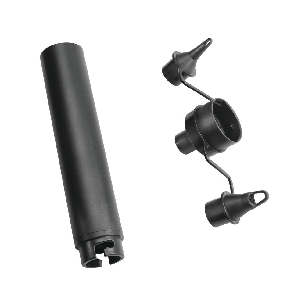 Dodáváno s prodloužením trysky a třemi nástavci o různých průměrech, včetně adaptéru pro zpětný "sací" chod
