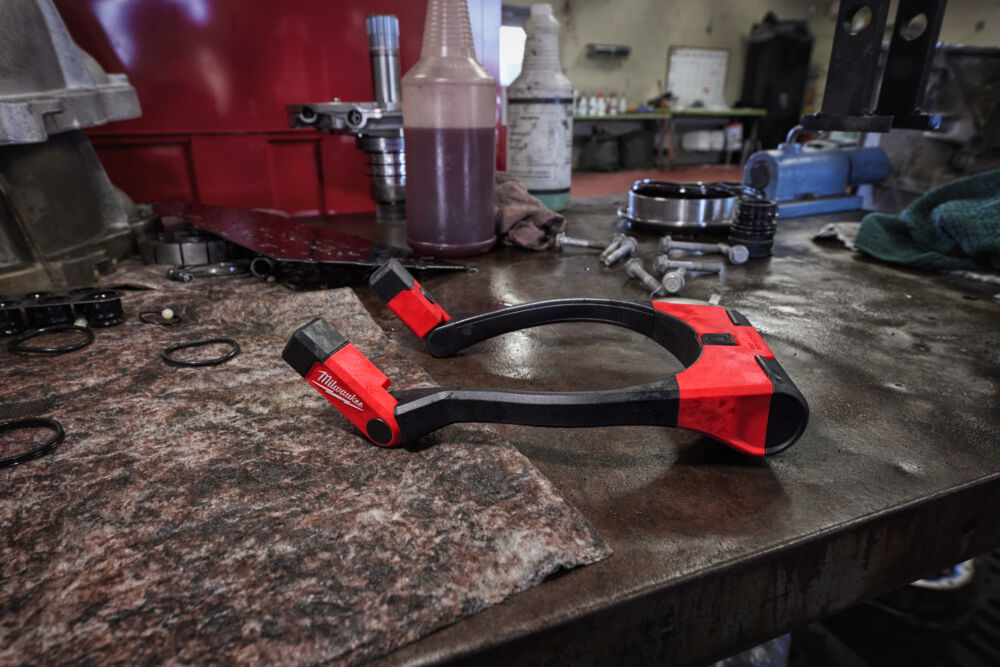 Skládací otočné světlo Milwaukee s magnety a integrovanou karabinou.