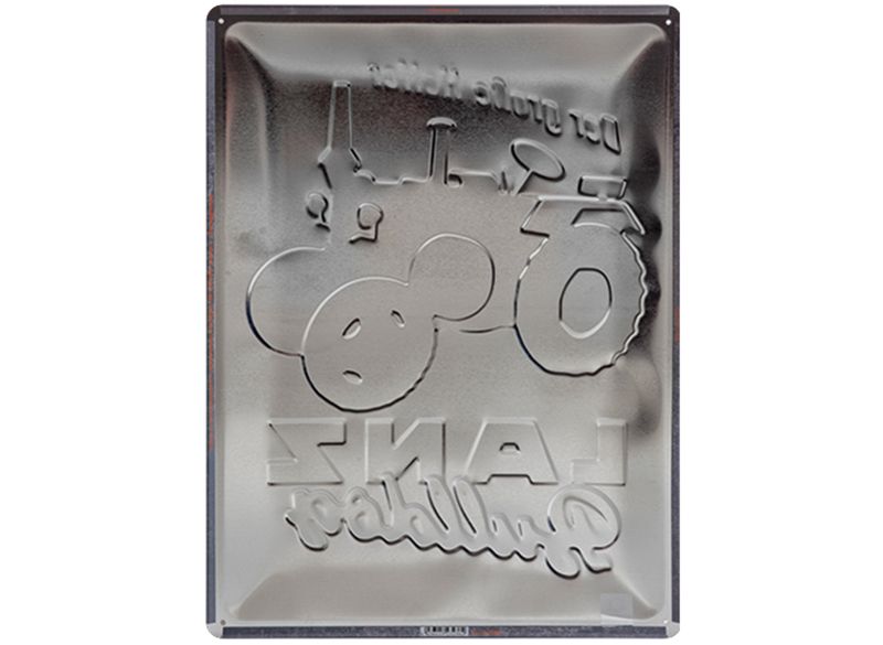 Dekorativní plechová cedule John Deere vyrobená z extra silného ocelového plechu, který je klenutý a vyražený ve více vrstvách. Cedule má zvlněné okraje, zaoblené rohy, předvrtané otvory a ochranný lak. Samostatně balené v pevných plastových sáčcích.