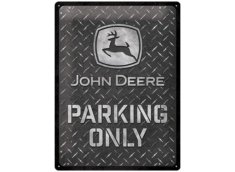 Dekorativní plechová cedule John Deere "Parking Only Diamant" je vyrobená z extra silného ocelového plechu, který je klenutý a vyražený ve více vrstvách. Cedule má zvlněné okraje, zaoblené rohy, předvrtané otvory a ochranný lak. Samostatně balené v pevných plastových sáčcích.