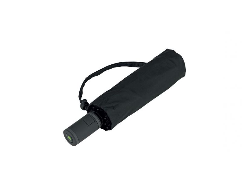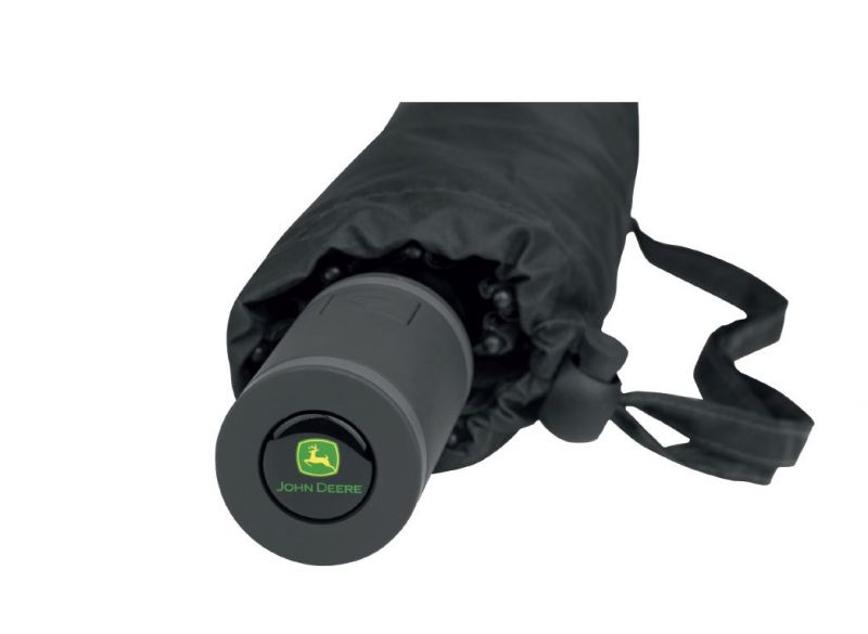 Černý skládací (kapesní) deštník s pohodlnou dvojitou automatickou funkcí pro rychlé otevírání a zavírání. Deštník má kvalitní větruodolný systém pro maximální flexibilitu rámu při silnějším větru díky pružným kolejnicím v šedé barvě. Logo John Deere na jednom panelu a také na rukojeti.