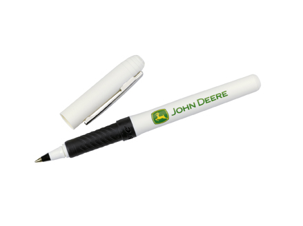Bílé kuličkové pero se sundavacím víčkem a sponou. Na těle pera je barevné logo John Deere. Náplň této psací pomůcky je černá.