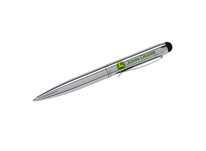 Mosazné pero s barevným logem John Deere a pogumovaným koncem, který slouží k ovládání jakékoliv dotykové obrazovky (tablety i chytré telefony). Náplň této psací pomůcky je černá.