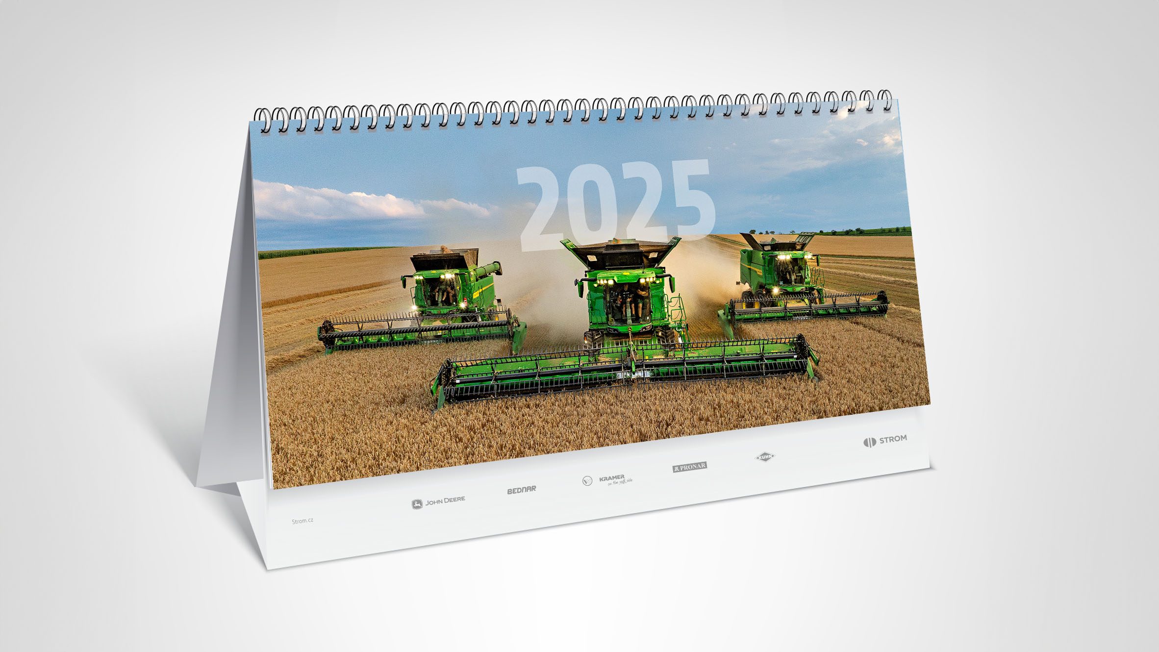 Originální stolní kalendář STROM s našimi autorskými fotkami dokonalé techniky John Deere pro rok 2025.