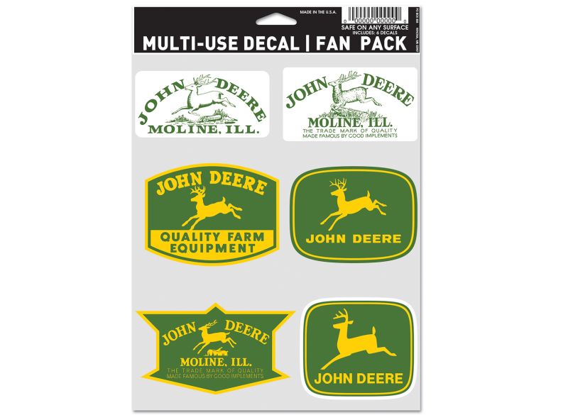 Balíček nálepek s vintage logem John Deere.
