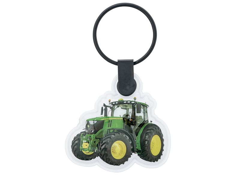 Přívěsek na klíče značky John Deere. Kruhový přívěsek na klíče s obrázkem traktoru 8R a nápisem "I´m in it for the tractor". Materiál: 100% akryl