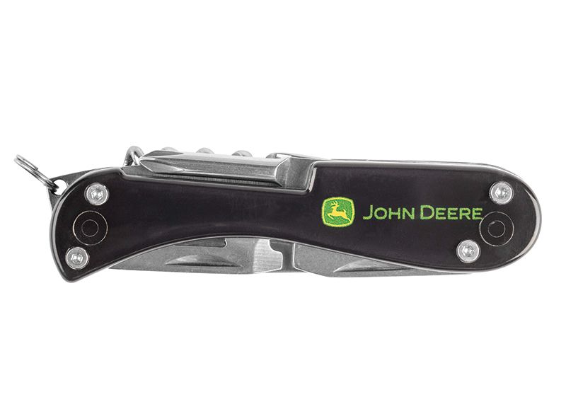 Plastová rukojeť s celopotiskovou úpravou na obou stranách. Dostupné funkce: nůž, otvírák na láhve, nůžky, otvírák na konzervy, plochý šroubovák 2 a 4 mm, vývrtka, šroubovák, kroužek. Délka čepele: 7 cm. Vyrobeno z nerezové oceli 2CR13.