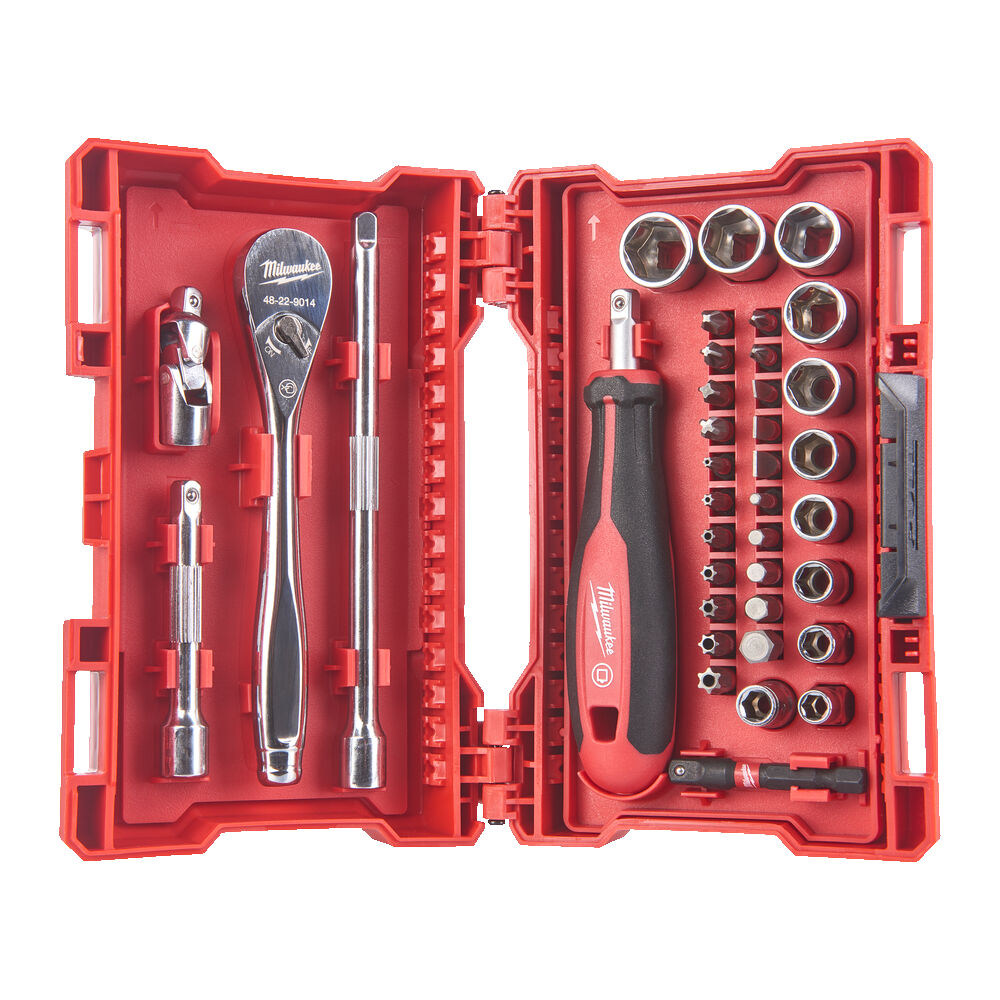 SADA RÁČNY 1/2˝ A METRICKÝCH NÁSTRČNÝCH KLÍČŮ MILWAUKEE