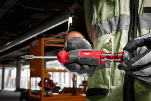 Úložiště bitů v rukojeti šroubováku zajišťuje, že máte bity uspořádané a ihned k dispozici.