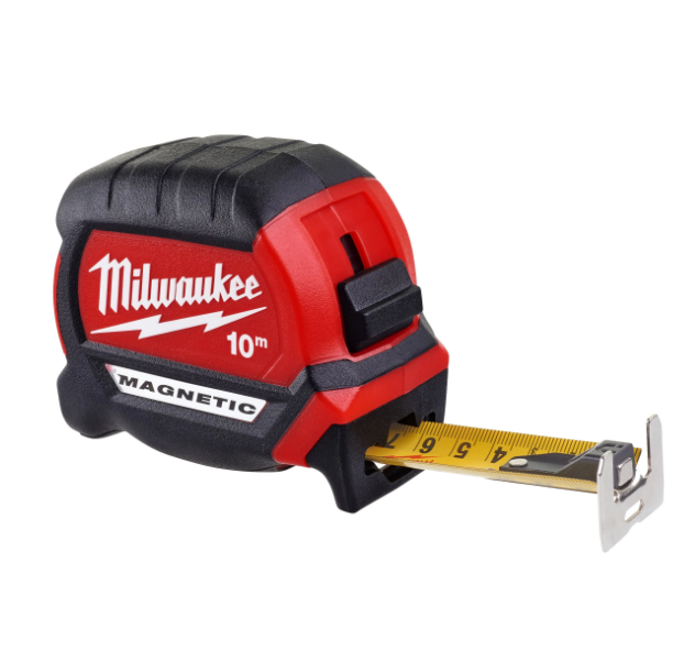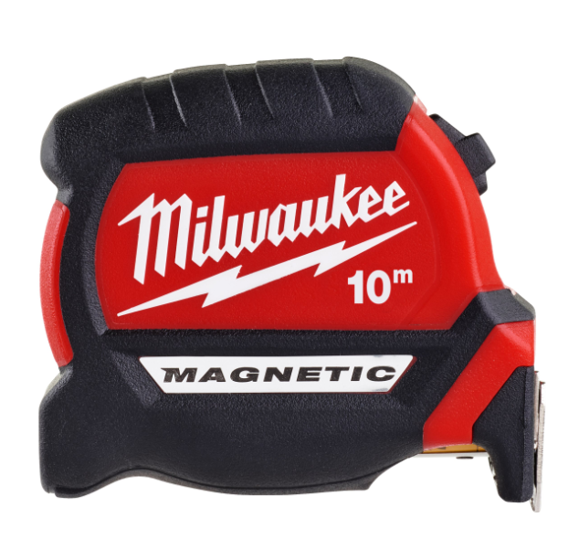 Magnetický svinovací metr o délce pásma 10 metrů.