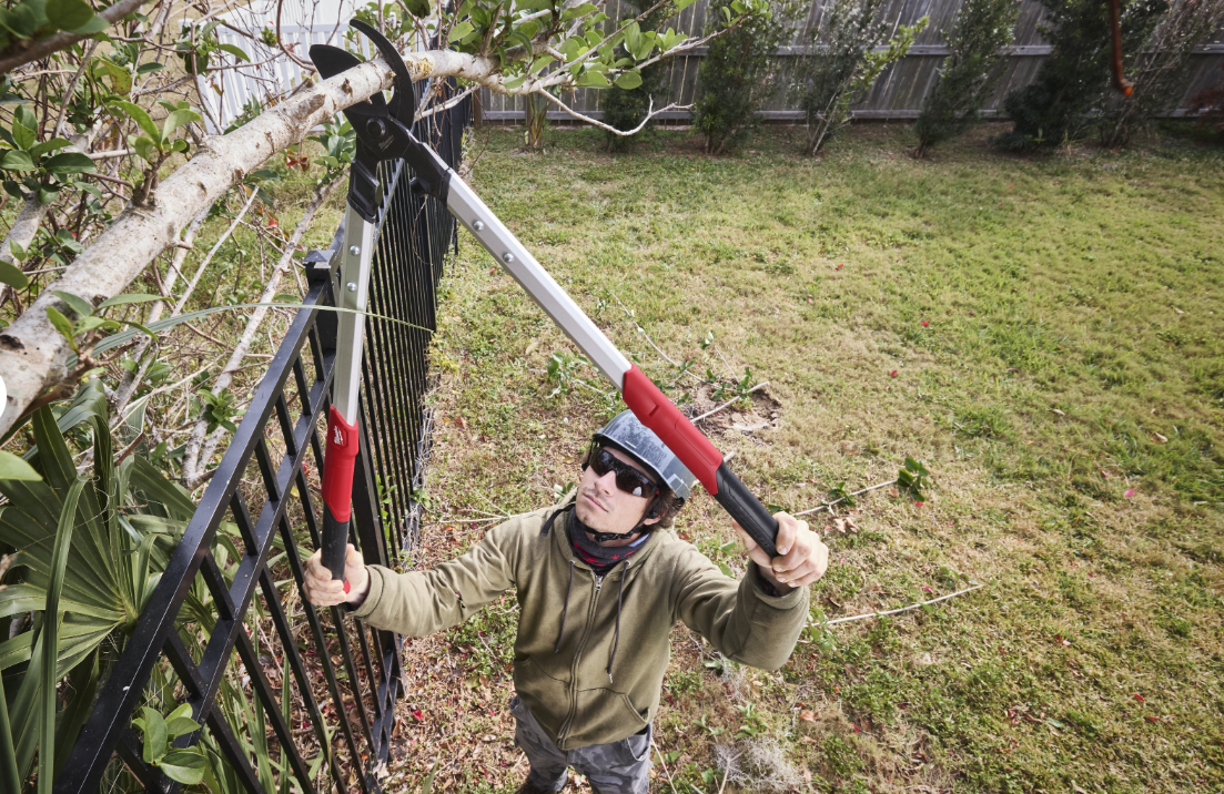 Teleskopické pákové vyvětvovací nůžky Milwaukee schopné stříhat větve o průmeru 5 cm.