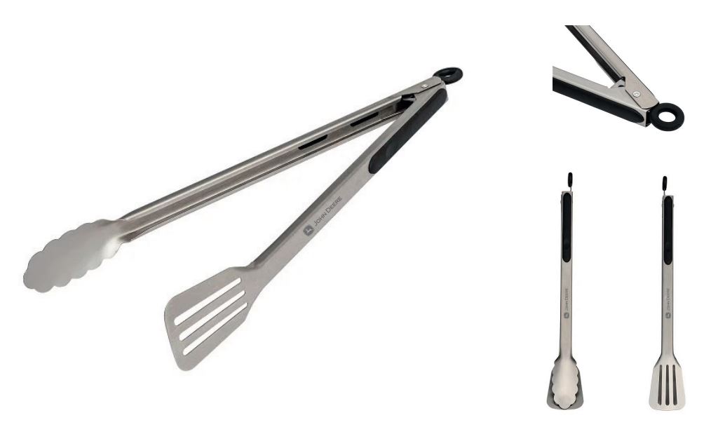 Tyto nerezové kleště jsou nepostradatelným pomocníkem při každém grilování. S délkou 39 cm zaručují bezpečnou manipulaci a umožňují maso a zeleninu otáčet a podávat tím nejlepším možným způsobem. Aby bylo možné grilované jídlo dokonale uchopit, jsou konce grilovacích kleští mírně zahnuté do obracečky. Pogumovaná oblast rukojeti poskytuje dobré a pevné držení. Grilovací kleště lze navíc uzamknout nebo otevřít zatažením za očko na hlavě. Tyto BBQ kleště lze díky své délce pohodlně uložit do každé kuchyňské zásuvky nebo se dají zavěsit za očko. Grilovací kleště jmají laserem vyryté logo John Deere.