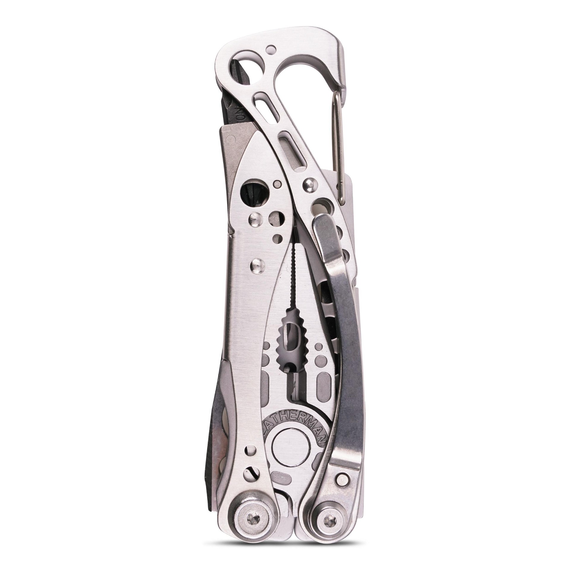 Vysoce kvalitní, kompaktní a ultralehký multifunkční nůž (10 cm) s karabinou, držákem bitů a mnoha dalšími prvky.