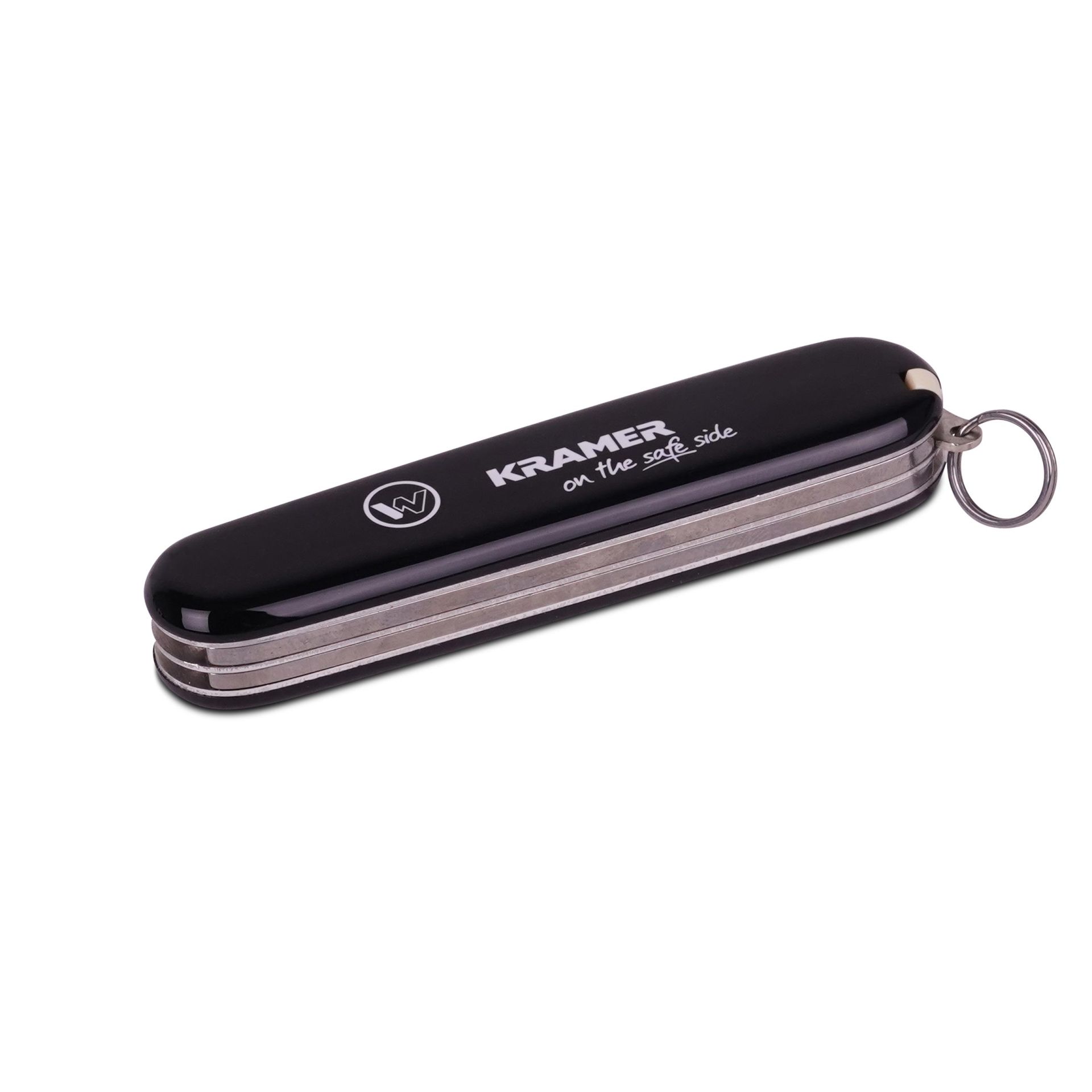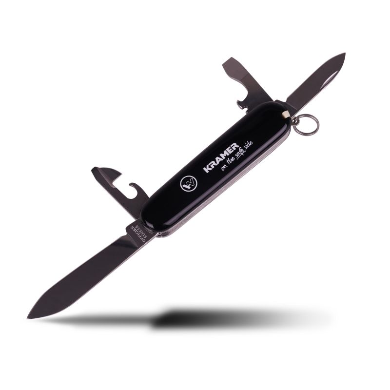 Kapesní nůž Kramer v černém provedení s logem značky je praktický a stylový doplněk pro každodenní použití. Díky kompaktním rozměrům se snadno vejde do kapsy a hodí se na cesty, do práce i jako drobný dárek pro fanoušky značky Kramer.