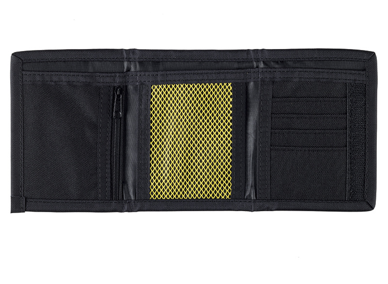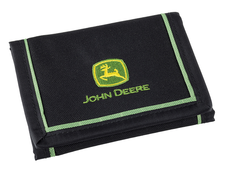 Černá peněženka na suchý zip s kapsou uvnitř na zip. Logo John Deere na přední straně peněženky. 100% Polyester.