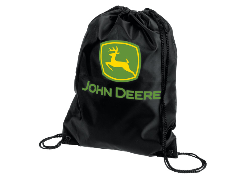 Praktický černý batoh s velkým barevným logem John Deere vpředu. Uzavírání pytle stahovacími šňůrami. Materiál: 100% nylon