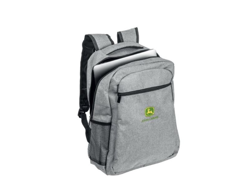 Šedý batoh s vyšívaným logem John Deere. Hlavní komora na 2 cestný zip, přední kapsa na zip a dvě boční síťované kapsy. Uvnitř kapsa na notebook. Polstrované nastavitelné ramenní popruhy. Kapacita: 20L.