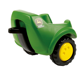 Malý zelený přívěs s barevným logem John Deere, který se používá dohromady s odstrkovadlem MCR132072000. Doporučený věk: 1 rok +