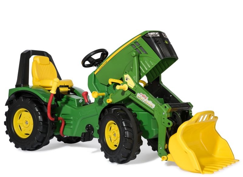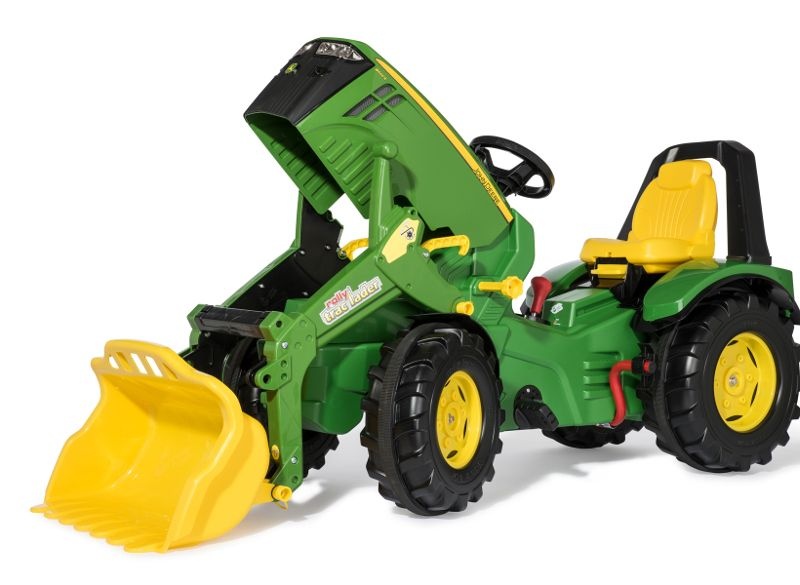 Největší šlapací traktor v řadě John Deere z rolových hraček je skvělou zábavou pro nejmenší farmáře v tréninku. Tento prémiový model flotily šlapacích traktorů se vyznačuje nastavitelným sedadlem s převrácenou tyčí a tvrdými plastovými koly s gumovým páskem pro lepší přilnavost a nízkou hlučnost jízdy. Kapota motoru se dá otevřít a poskytuje malý úložný prostor pro důležité věci, které si řidič potřebuje vzít s sebou. Šlapací traktor je vybaven nakladačem rollyTrac, 2-rychlostním řazením a brzdami.