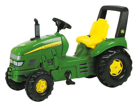 Šlapací traktor pro děti v typických barvách John Deere. Kapotu lze otevírat. Sedadlo lze nastavovat. Profilovaná kola a pneumatiky mají uprostřed hladký pruh pro snadnější jízdu. Extra silná 12mm široká zadní náprava. Přední náprava je zesílena kovem.